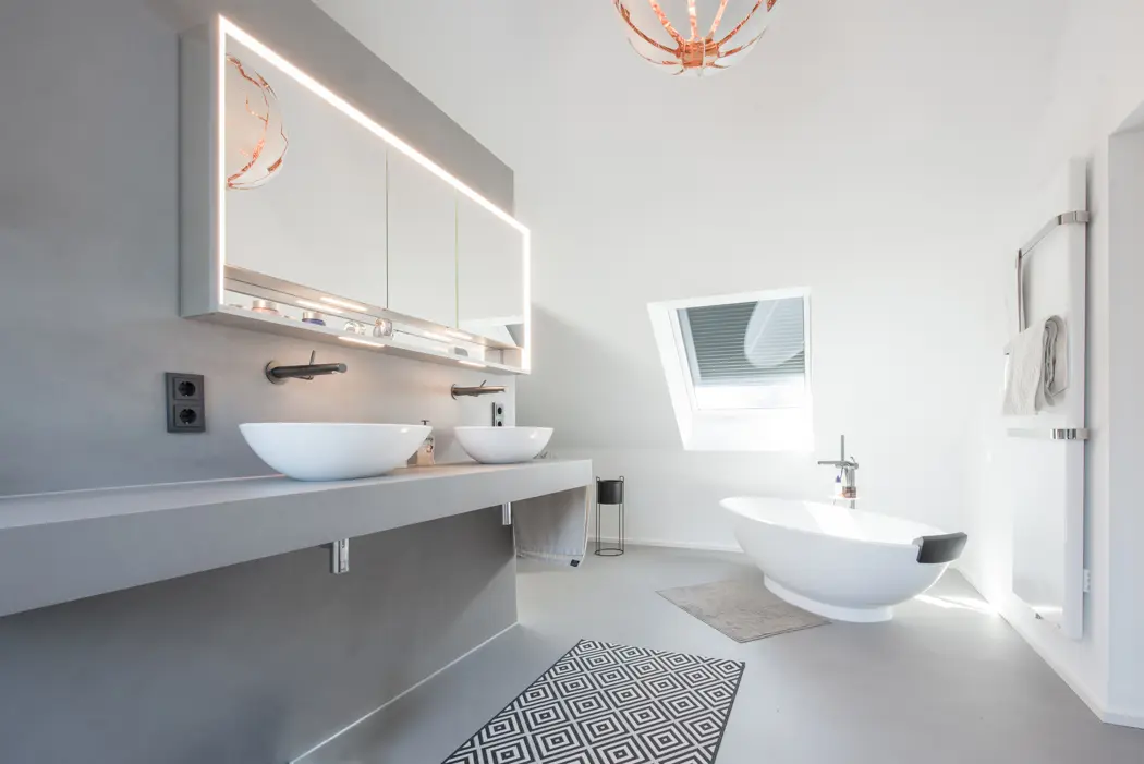 Ein fugenloser Boden zeichnet sich durch eine glatte und vollständig ebene Fläche aus, die sich über Teilbereiche oder sogar die gesamte Etage eines Hauses erstrecken kann. Optische Unterbrechungen durch Fugen entstehen nur durch einzelne Bewegungsfugen, der Boden weist keine optischen Unterbrechungen auf wie es beispielsweise bei dem Fugenbild einer Fliese der Fall ist. Nicht nur in Neubauten findet ein solcher Boden häufig Verwendung, auch bei Sanierungen spielt er aufgrund seiner besonderen Eigenschaften eine entscheidende Rolle. Fließ- oder Spachtelbeton kann beispielsweise auf vorhandene Untergründe wie Fliesen aufgebracht werden und schafft so eine glatte, nahtlose Oberfläche.