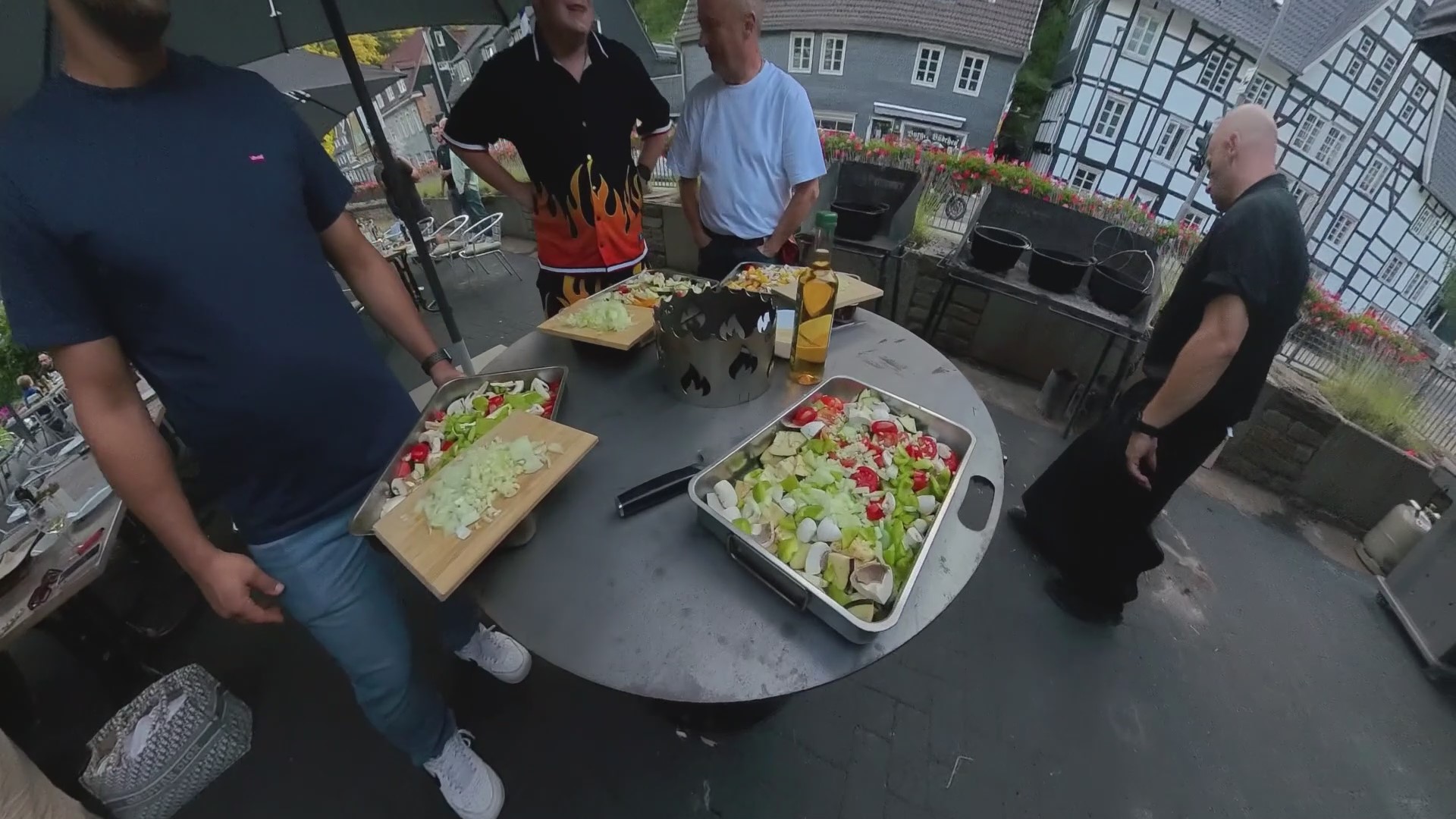 Ab 18 Uhr hieß es: Schürze an und ran an den Grill. In kleinen Gruppen haben wir unter fachkundiger Anleitung ein mehrgängiges Menü selbst zubereitet – vom Appetizer bis zum Dessert. Dabei wurde geschnitten, gerührt, gegrillt, gelacht und natürlich auch viel gefachsimpelt. Wer sonst gemeinsam an Dächern, Leitungen oder Böden arbeitet, hat an diesem Abend mit genauso viel Einsatz am Herd und Grill gestanden. Das Beste daran: Jeder konnte sich einbringen, neue Seiten an Kollegen entdecken und dabei viel über verschiedene Grilltechniken und Zutaten lernen.